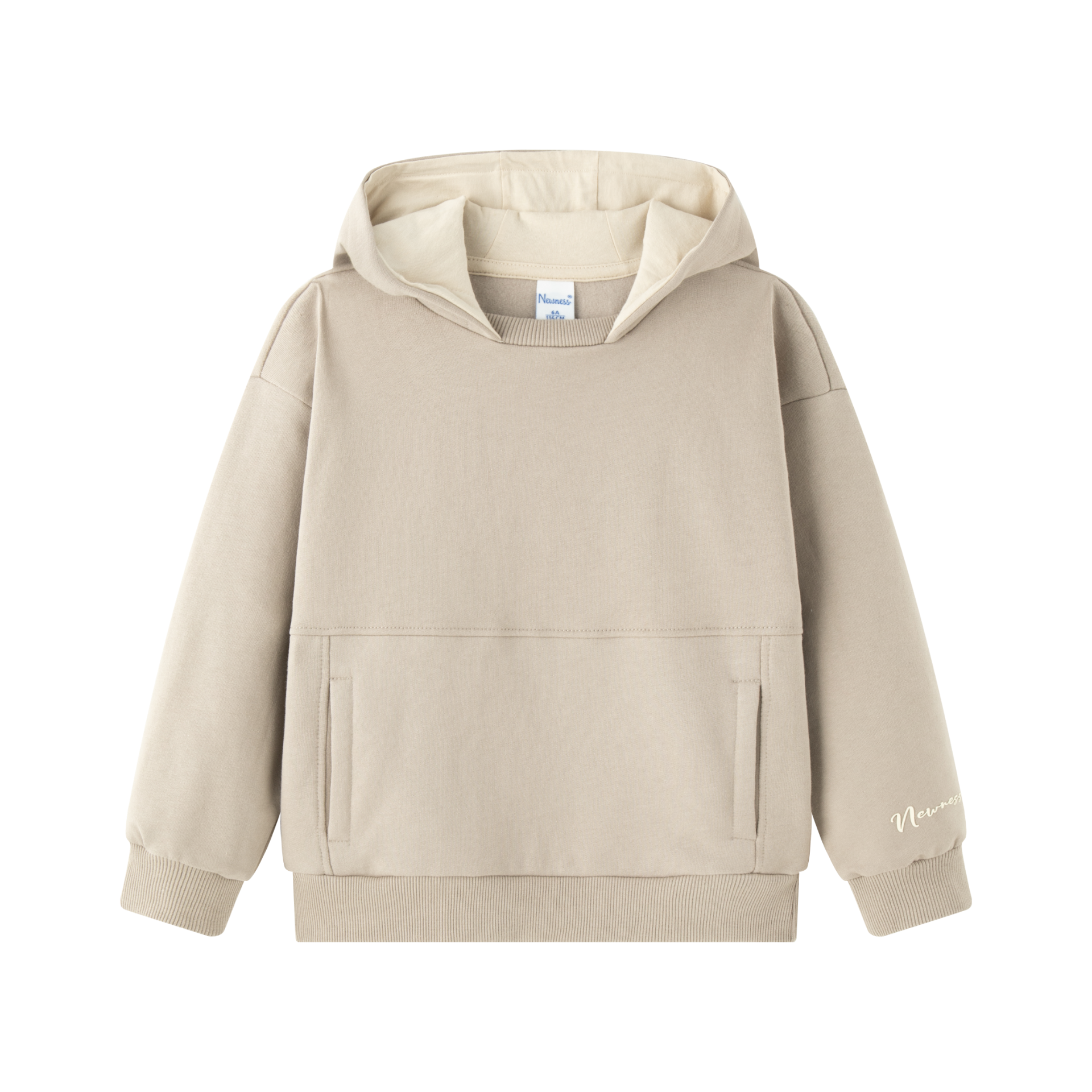 Kinderhoodie met lange mouwen. Met voorzakken. Kledingstuk in camel kleur. Kinderkleding. 80% Katoen, 20% Polyester SKU: JBI65271