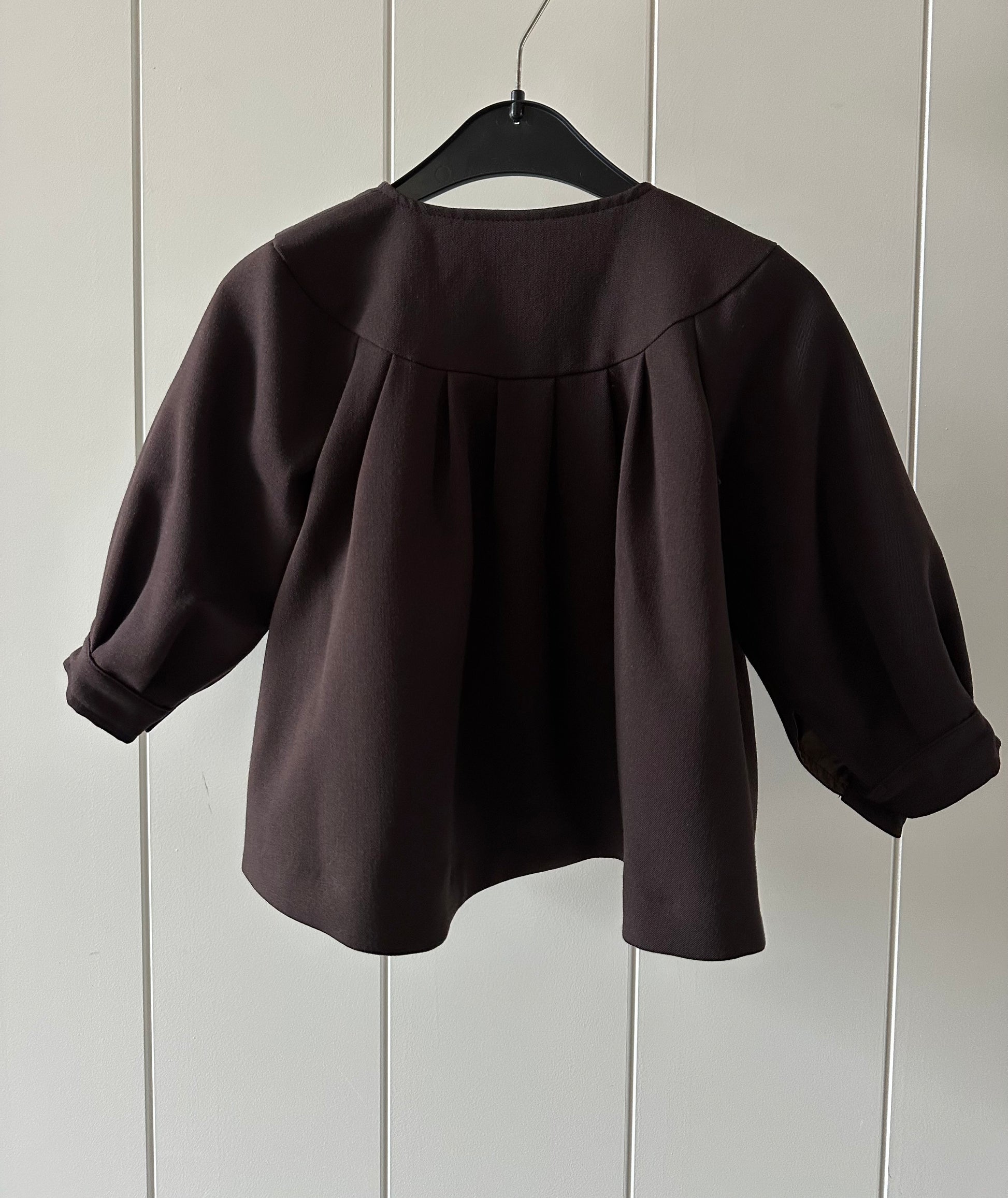 Loulou doorknoopjurk donkerbruin met rondepasjes